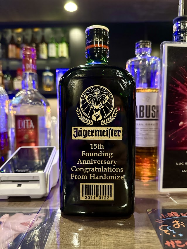 ちなみにHardonizeチームからは秋葉原重工の15周年をお祝いしてレーザー刻印のイエーガーマイスターをお贈りさせていただきました!重工といえば重油(=イエーガーマイスター)ですからね!当日も割とたくさん飲んだ記憶がありますね‥