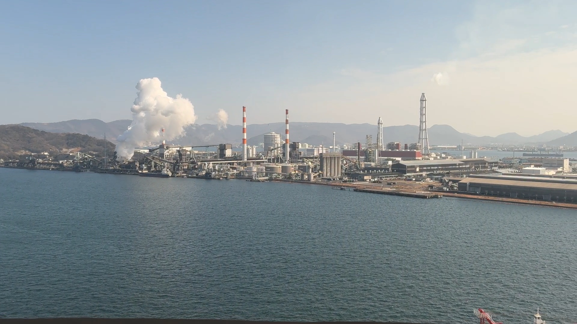 四国側から本州側へ渡る時は右手、本州側から四国側へ渡る時は左手の所に工業地域がありまして、坂出コスモ石油シーバース、三菱ケミカル香川、四国電力・坂出火力発電所が30秒くらいでまとめて見れてしまうというインダストリアル幕の内!たまらないものがあります。